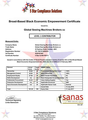 Global Sewing Machines Brokers was established in 1997 by Navin Lalla with a vision to supply the labour absorbing clothing industry with cost effective capital equipment with state of-the-art technology and after sales service.
