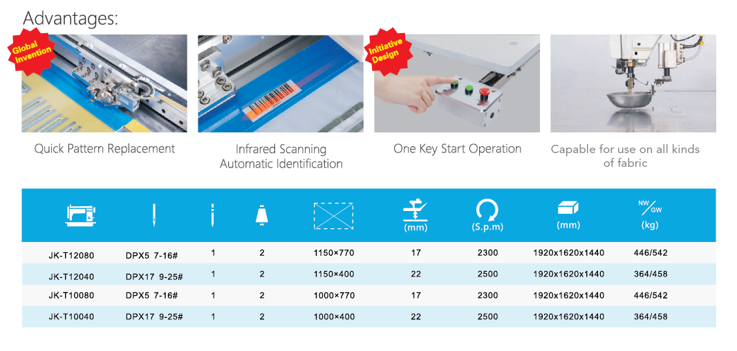 Programmable Electronic Large Area Pattern Sewing Machines. Automatic Operation, High Efficiency.